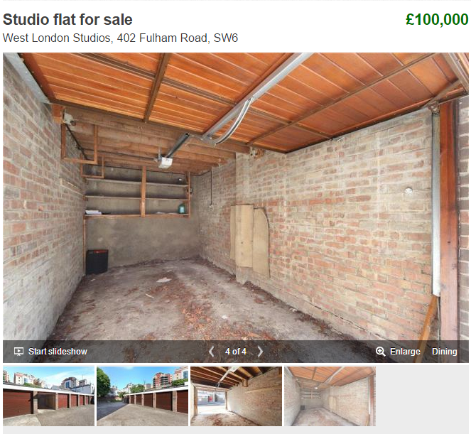 It's not ideal, is it Even more oddly, on the website of Fulham estate agents Marsh & Parsons, it is listed not as a garage, nor as a studio, but as a house.
