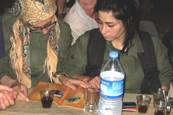 “Women were and are oppressed; their liberation will only take place through the class struggle.” Some of us balked a this trite dismissal, but others concurred that we needed to look at social structure rather than ideology; the MSF visitors had been some of the few women workers we had met outside of the military and police; we had seen no women shopkeepers in Kobane, and it was more common to see a 13-year-old boy driving than a woman. When the brigade was invited to dinner by a local politician, our group brought the only women at the table.
