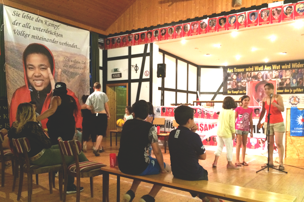 On another night they each spoke as a victim of the Suruc bombing, introducing themselves and saying how old they were when they died; everywhere the presence of “the martyrs” who died in Suruc or fighting in Rojava was felt, in their speech and on the huge banners on the walls. Biggest of all was a ceiling to floor portrait of the woman who gave this years camp its name: Ivana Hoffmann.